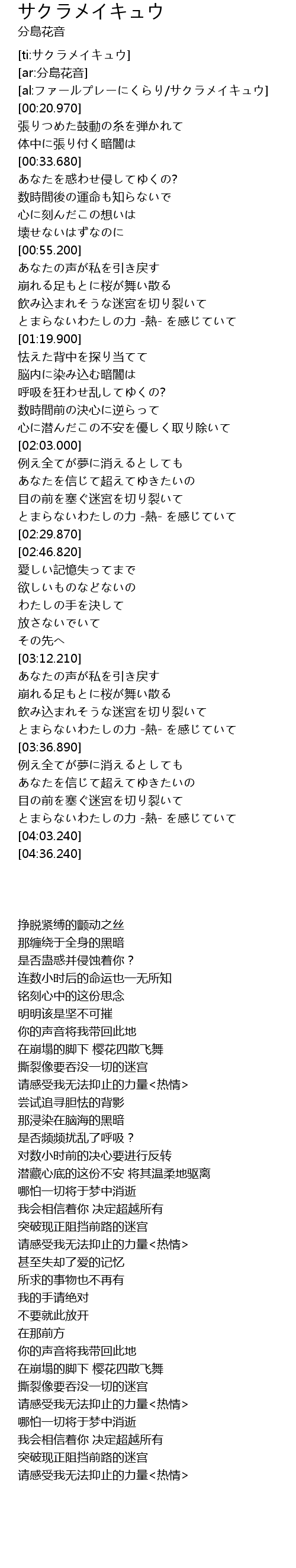 | [03:20.630] | 崩れる足もとに桜が舞い散る |