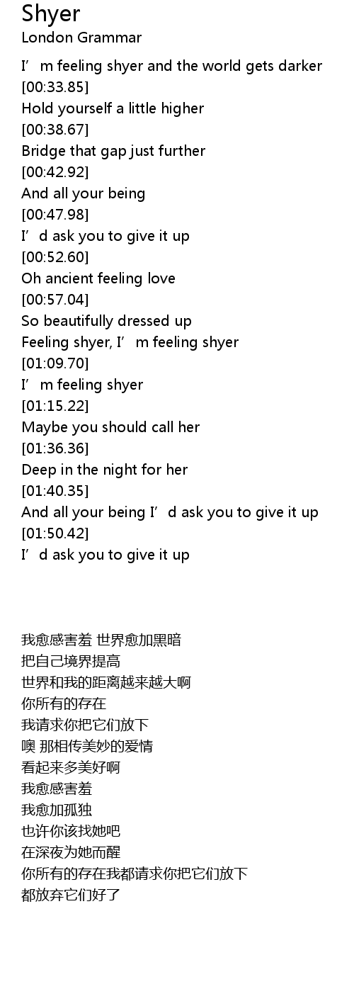 | [01:01.69] | Feeling shyer, I’m feeling shyer |
