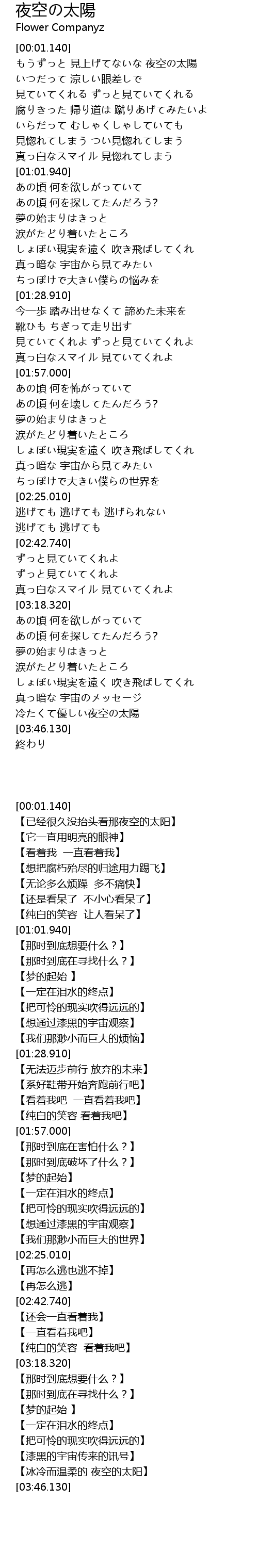 | [03:41.050] | 冷たくて優しい夜空の太陽 |