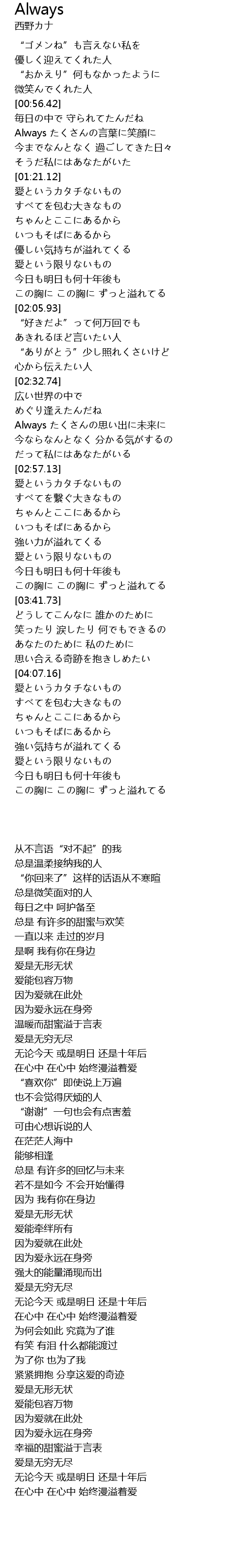 | [01:04.46] | Always たくさんの言葉に笑顔に |