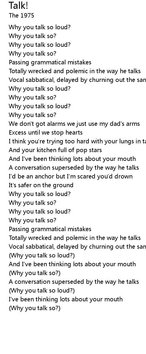 (Why you talk so?) |