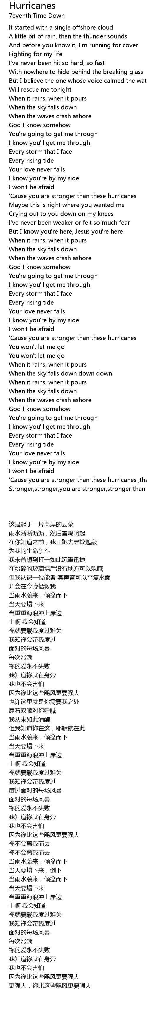 Stronger,stronger,you are stronger,stronger than these hurricanes |