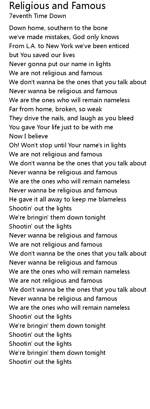 Never wanna be religious and famous |