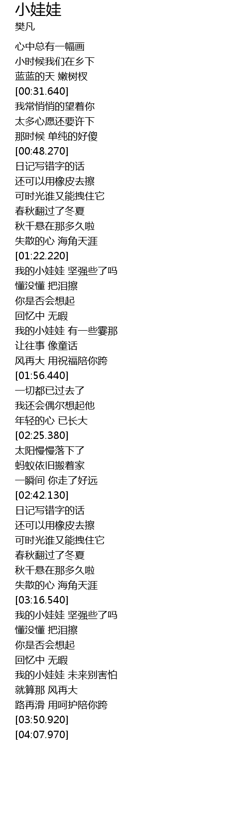 | [03:36.990] | 我的小娃娃 未来别害怕 |