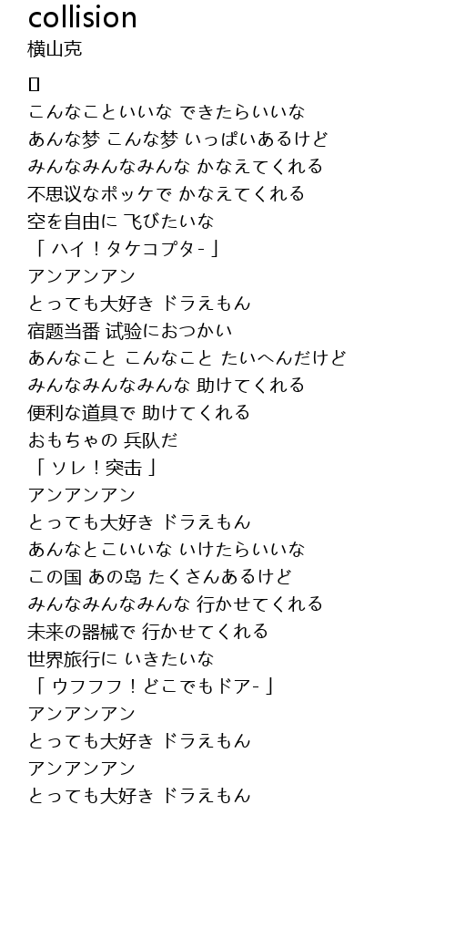 | [00:15.271] | こんなこといいな できたらいいな |
