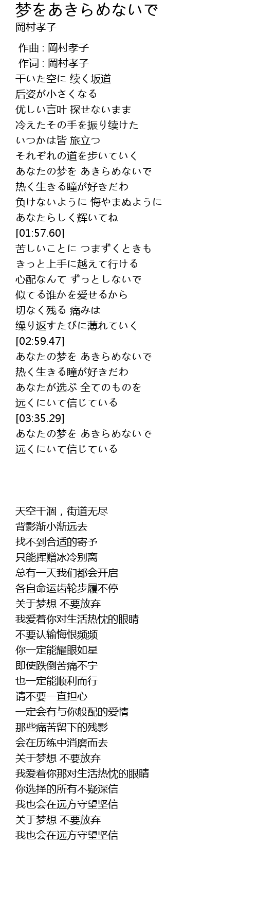| [00:00.00] | 作曲 : 岡村孝子 |