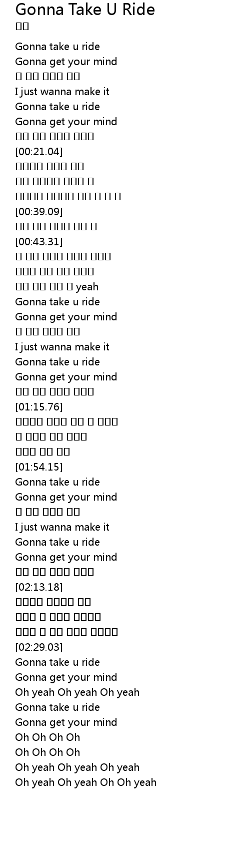 | [00:02.64] | Gonna take u ride |