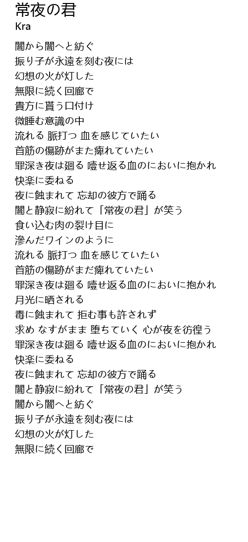 | 求め なすがまま 堕ちていく 心が夜を彷徨う | |