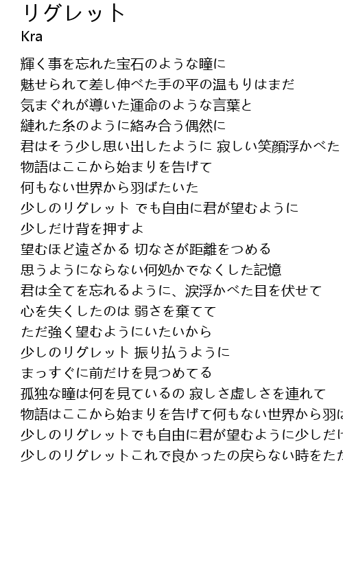 | 少しのリグレットこれで良かったの戻らない時をただ想うだけ |