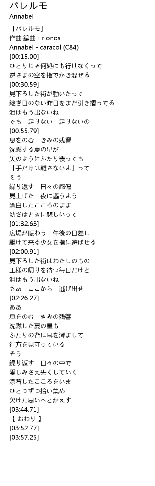 | [00:03.00] | 「パレルモ」 |