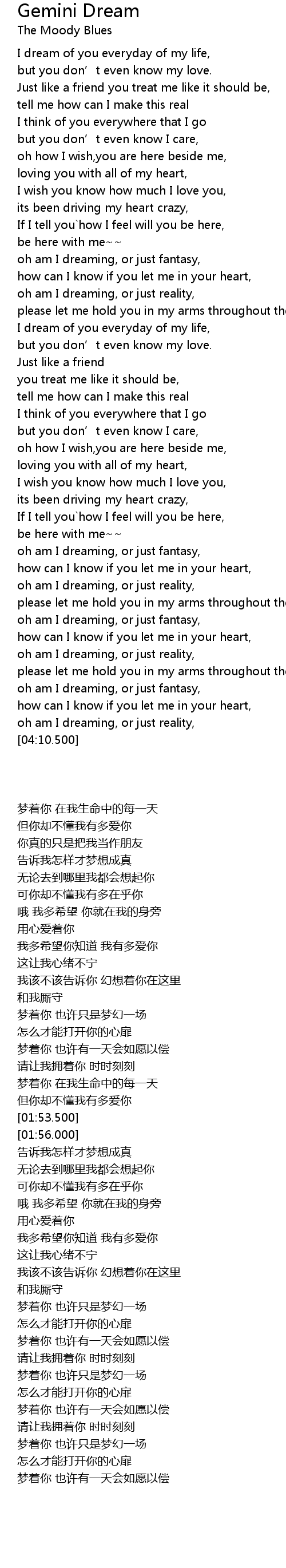 | [00:10.500] | I dream of you everyday of my life, |