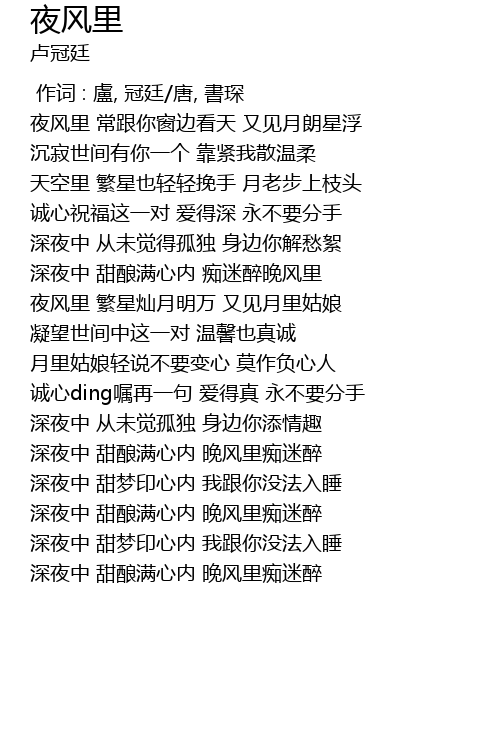 | [01:21.19] | 深夜中 甜酿满心内 痴迷醉晚风里 |
