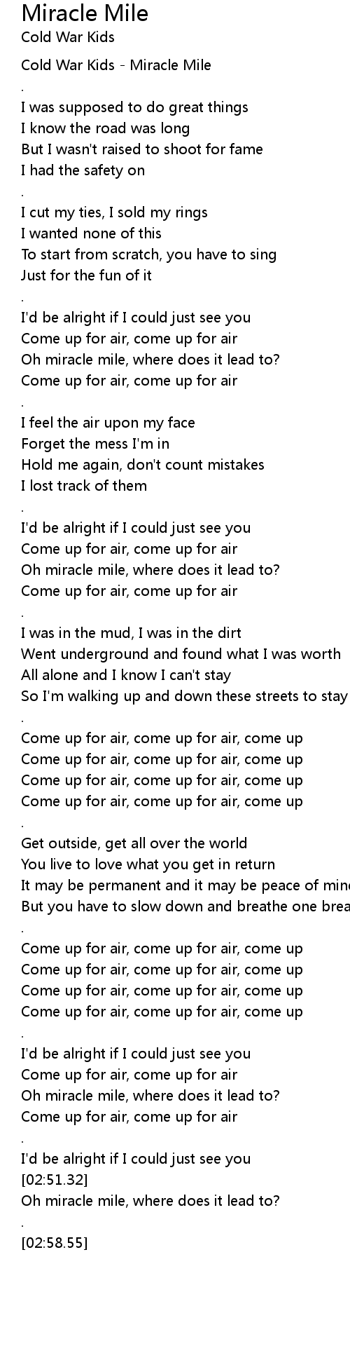 Come up for air, come up for air, come up |