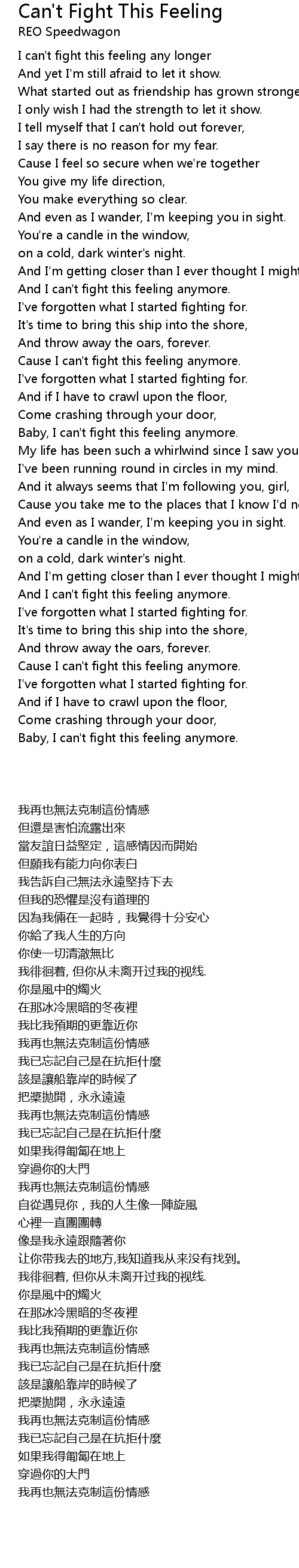 Baby, I can't fight this feeling anymore. |