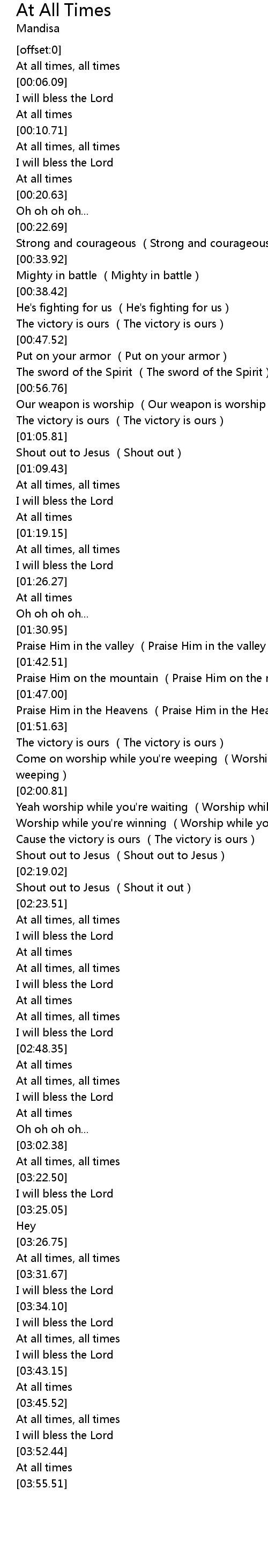 | [03:23.49] | I will bless the Lord |