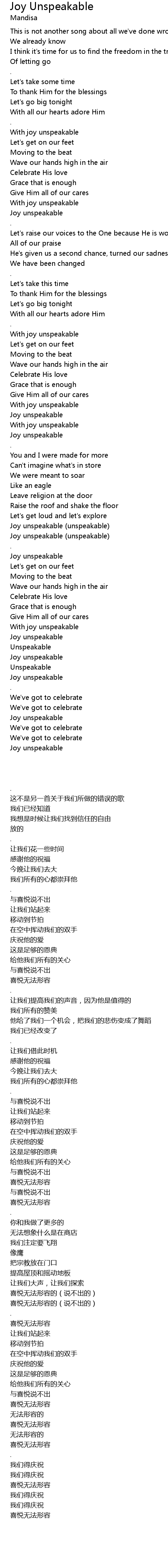 Joy unspeakable (unspeakable) |