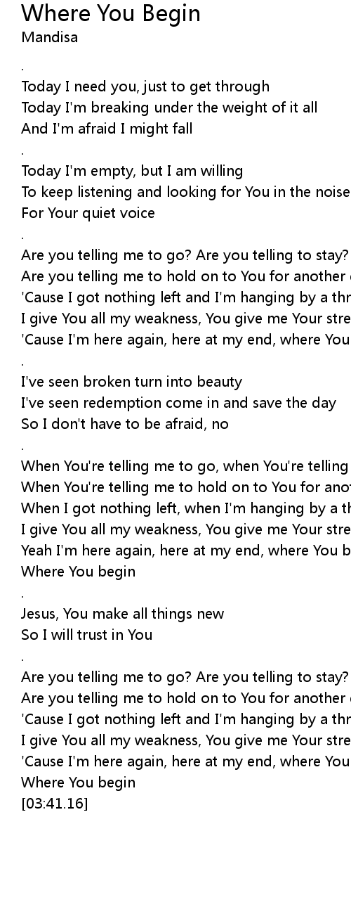 [03:24.41] 'Cause I'm here again, here at my end, where You begin