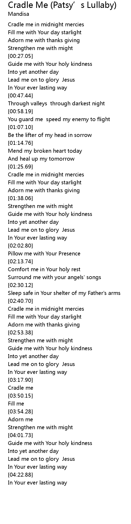 Cradle Me (Patsy’s Lullaby) Cradle Me Patsy' s Lullaby Lyrics