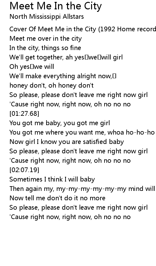 | [00:12.46] | Cover Of Meet Me in the City (1992 Home recording) by Junior Kimbrough |