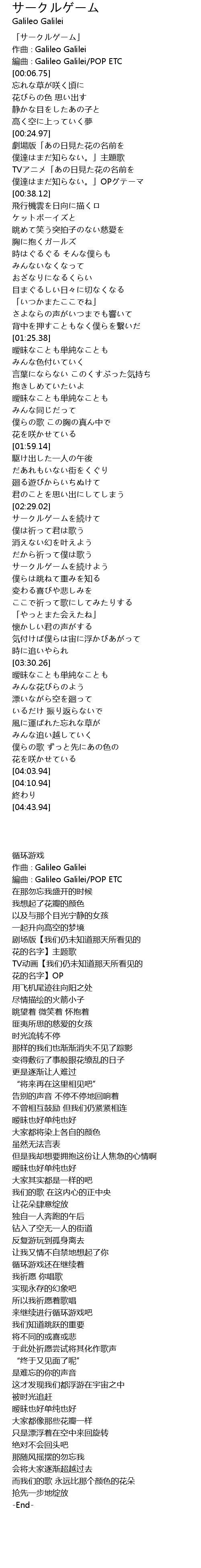 | [00:00.75] | 「サークルゲーム」 |