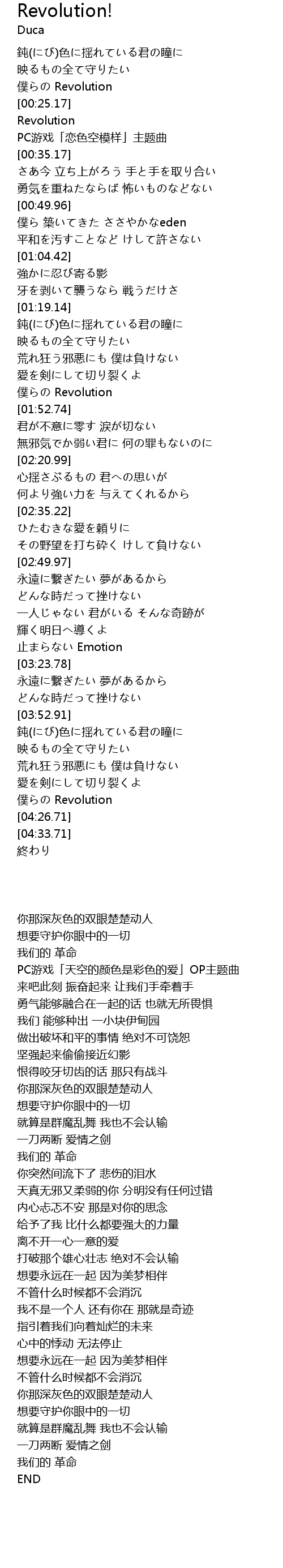 | [01:40.34] | 愛を剣にして切り裂くよ |