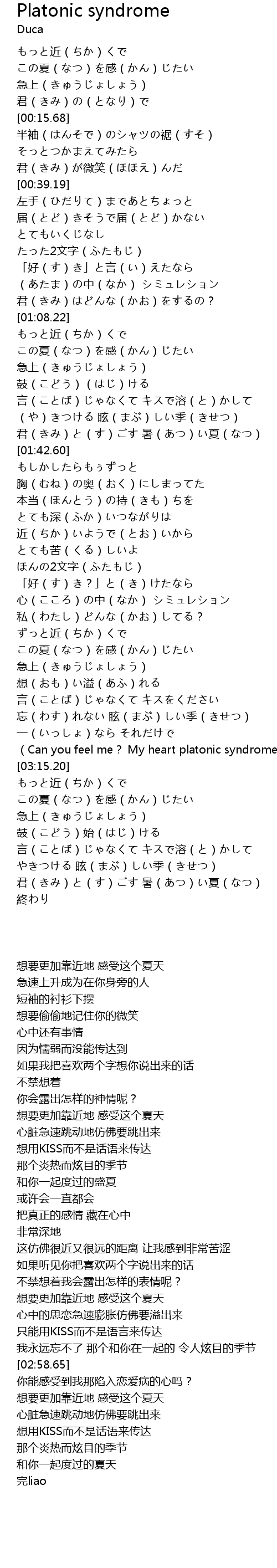 | [03:08.37] | Can you feel me? My heart platonic syndrome |