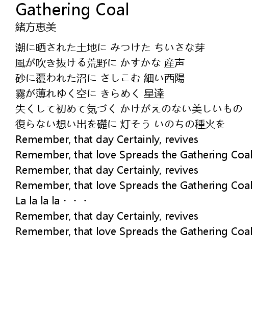 | 復らない想い出を礎に 灯そう いのちの種火を | |