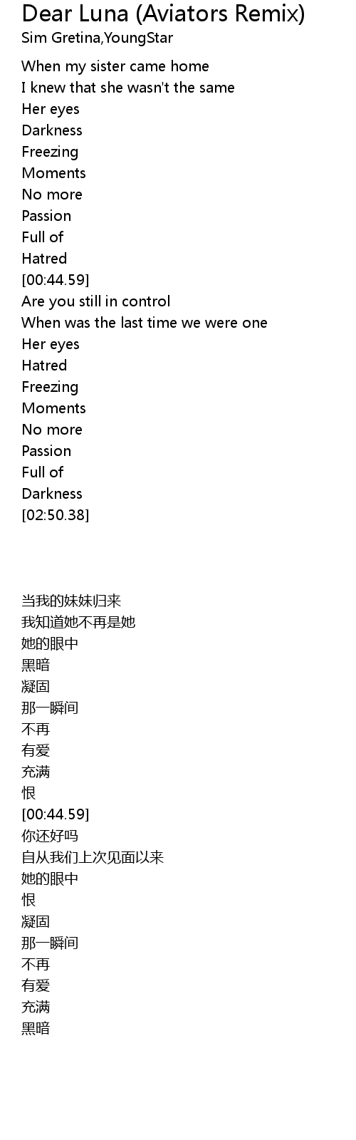 | Song | Dear Luna (Aviators Remix) |