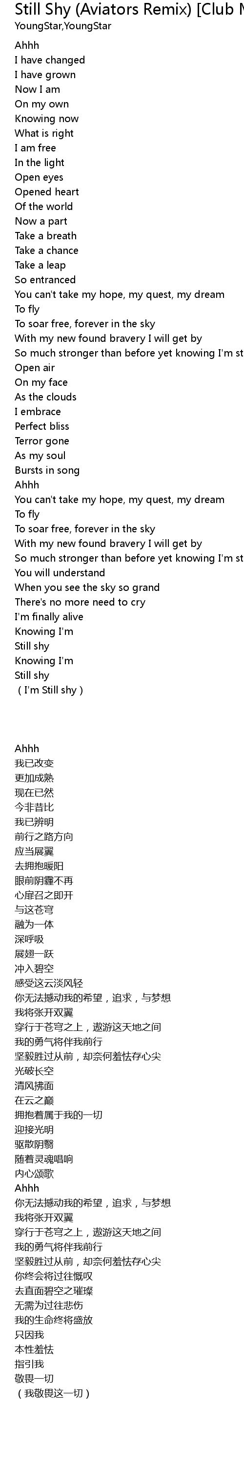 | [04:02.89] | So much stronger than before yet knowing I' m still shy |