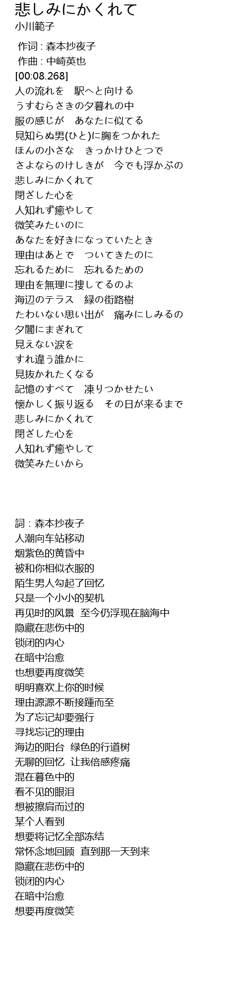 | [00:00.000] | 作词 : 森本抄夜子 |
