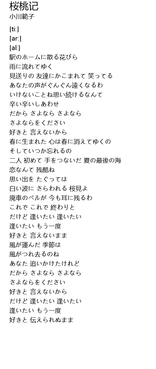 | [00:13.37] | 駅のホームに散る花びら |