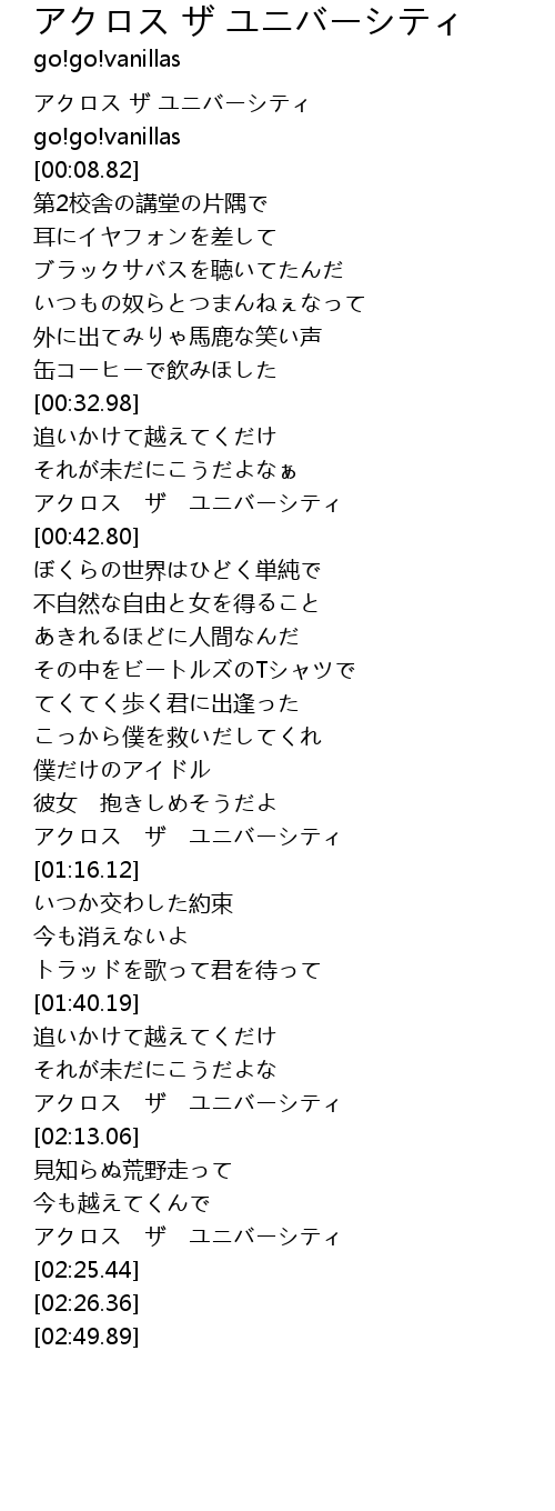 | [01:12.07] | アクロス ザ ユニバーシティ |