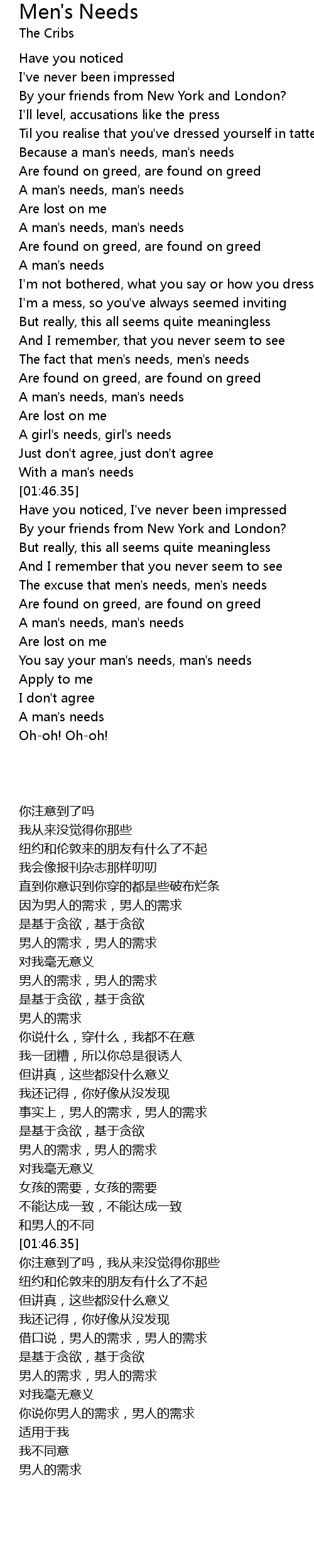 A man's needs, man's needs |