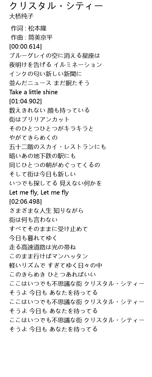 | [03:32.572] | ここはいつでも不思議な街 クリスタル・シティー |