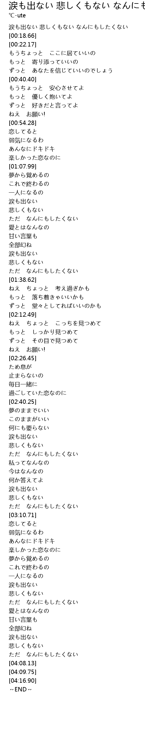涙も出ない 悲しくもない なんにもしたくない |