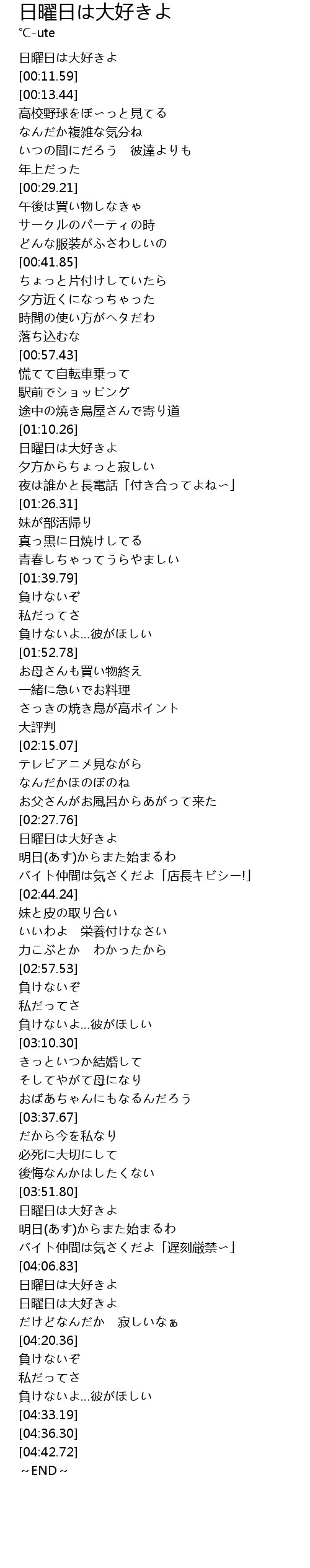 | [01:20.52] | 夜は誰かと長電話「付き合ってよね〜」 |