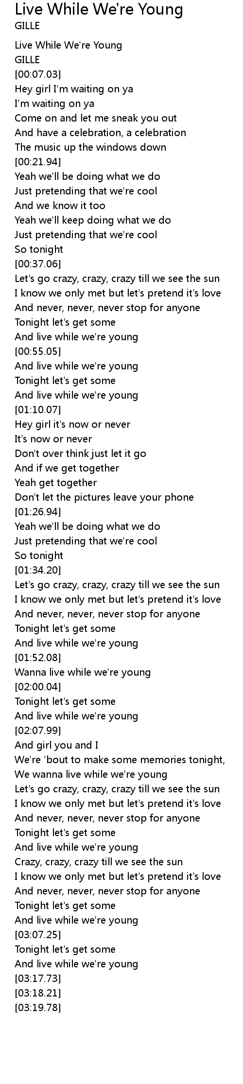 Live While We're Young Lyrics