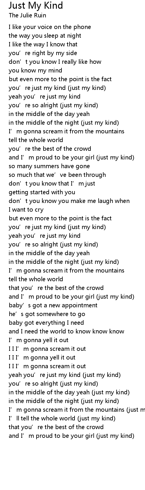 | you' re just my kind just my kind | |