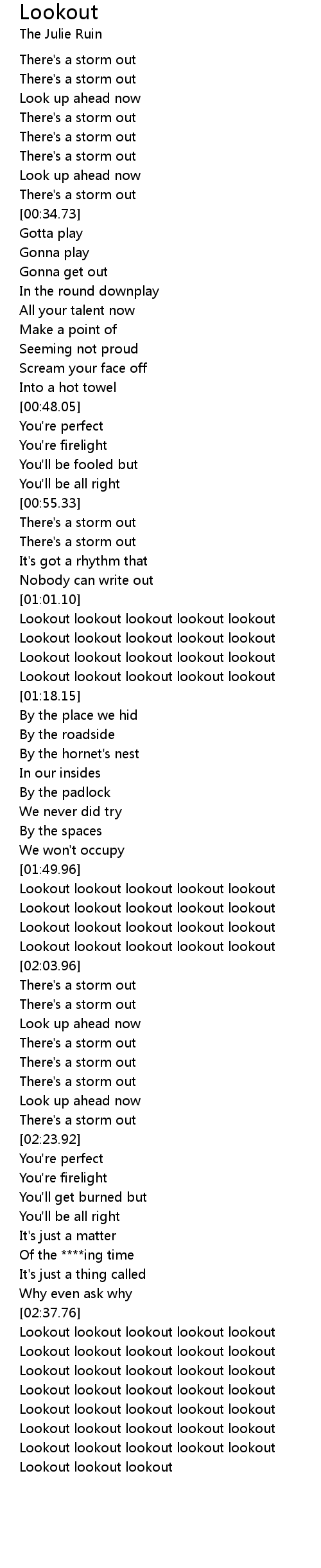 [02:38.09] Lookout lookout lookout lookout lookout