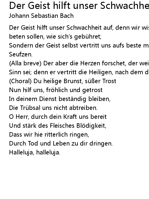 | [00:00.00] | Der Geist hilft unser Schwachheit auf, denn wir wissen nicht, was wir beten sollen, wie sich' s gebü hret |