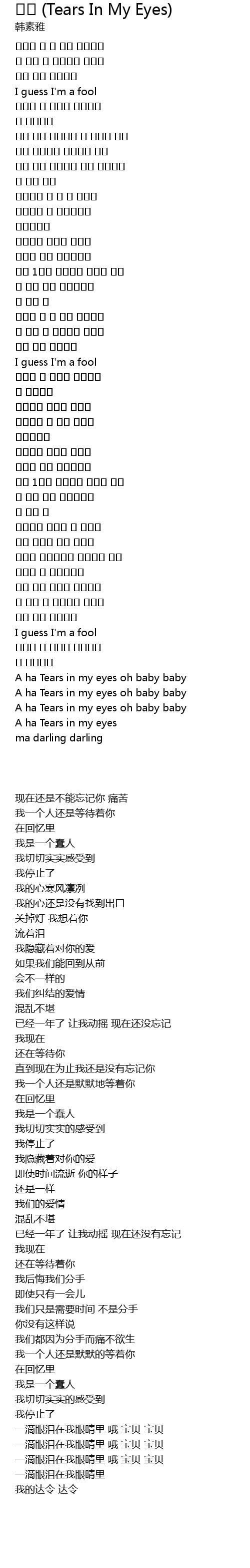 | [03:24.94] | A ha Tears in my eyes oh baby baby |