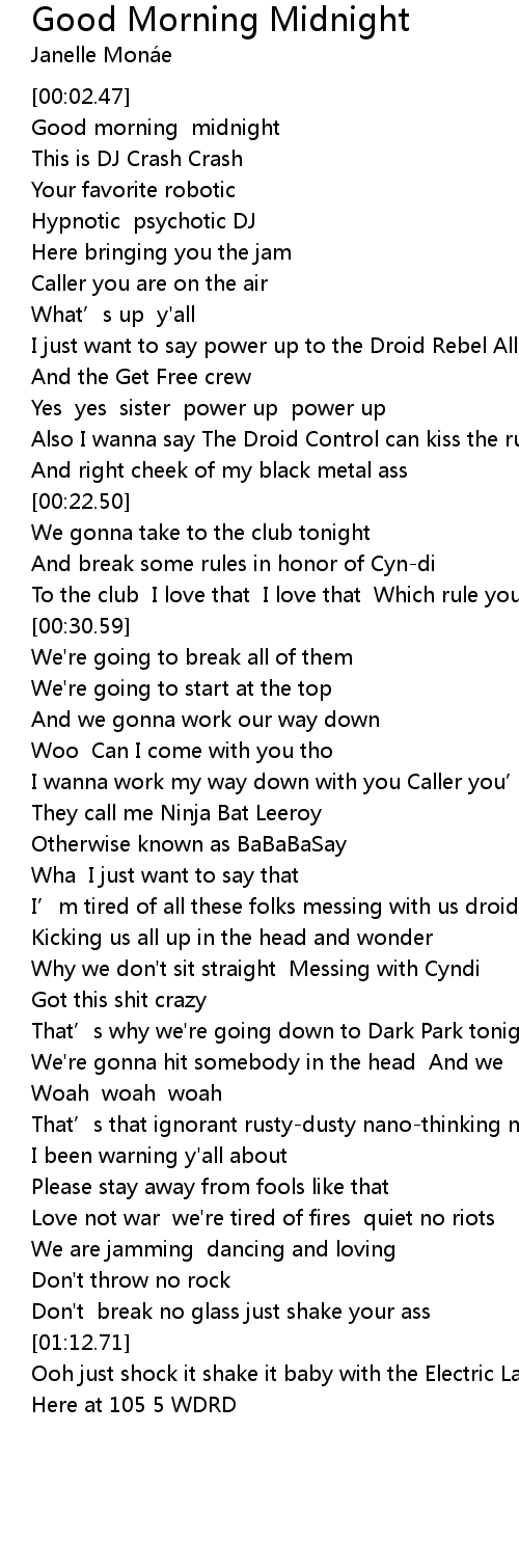 | [00:04.48] | Good morning midnight |