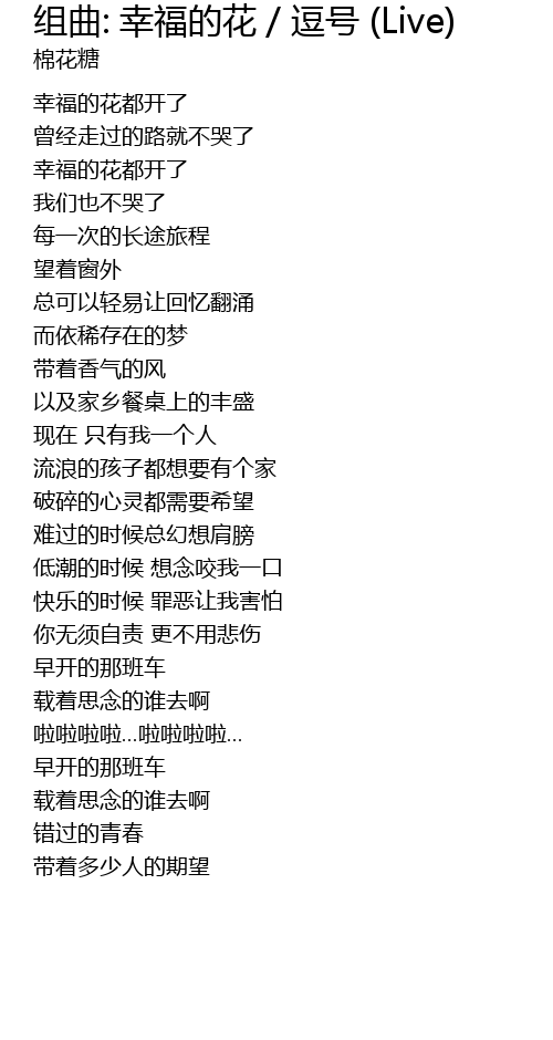| Song | 组曲: 幸福的花 / 逗号 (Live) |