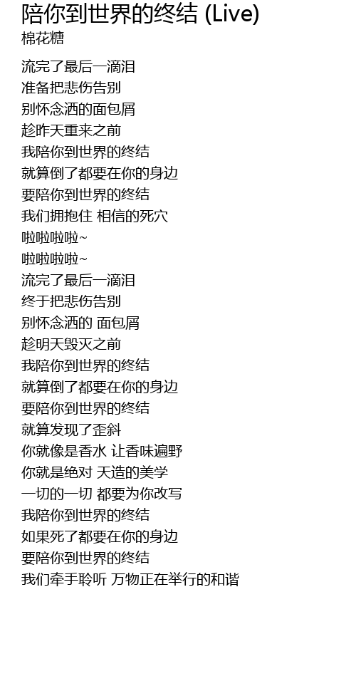 | [00:39.080] | 我陪你到世界的终结 |