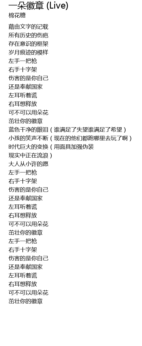 | Song | 一朵徽章 (Live) |
