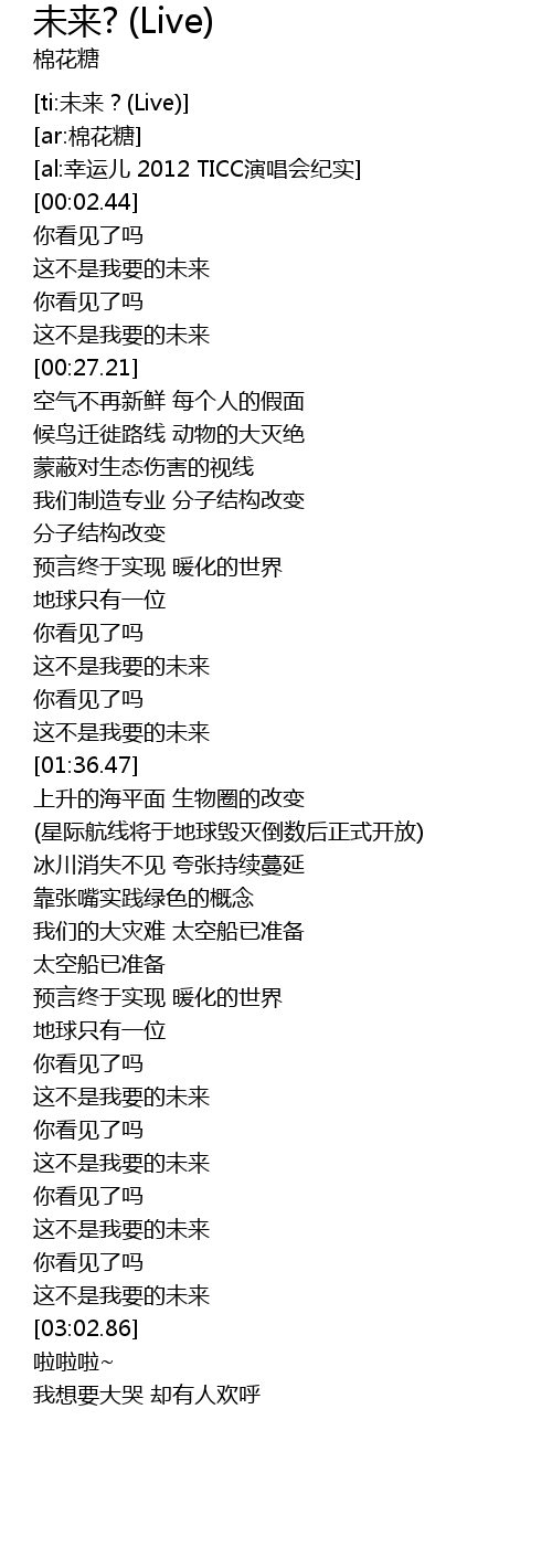 | [02:00.42] | 冰川消失不见 夸张持续蔓延 |