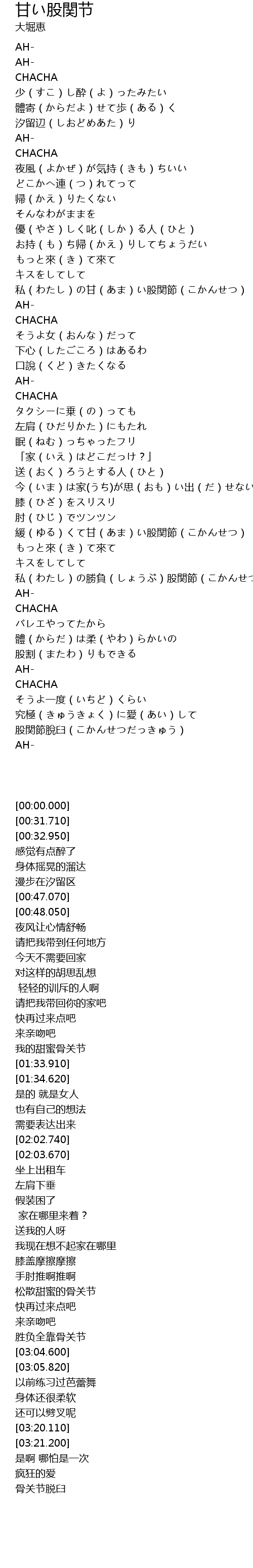| [02:41.350] | 緩(ゆる)くて甘(あま)い股関節(こかんせつ) |