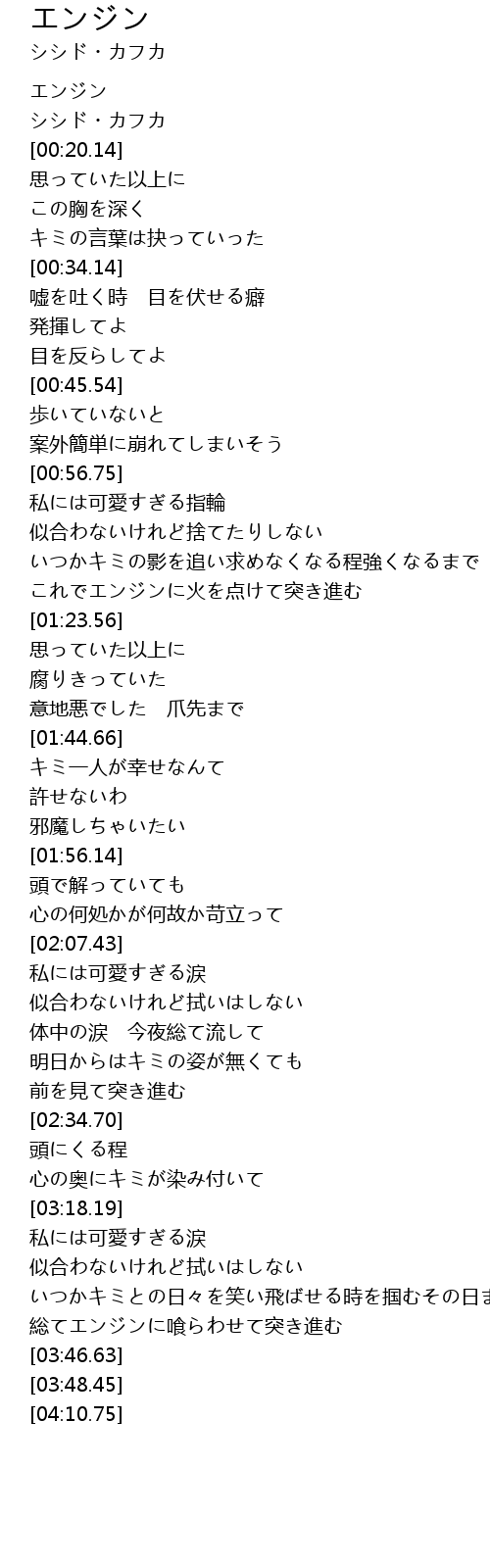 | [03:40.89] | 総てエンジンに喰らわせて突き進む |