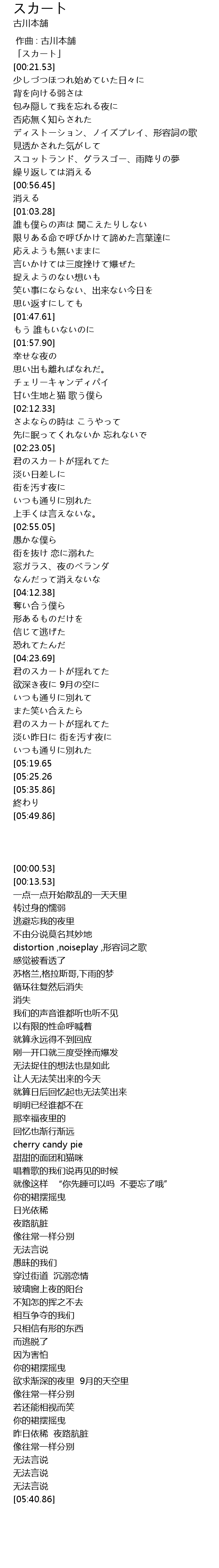 | [00:00.53] | 「スカート」 |