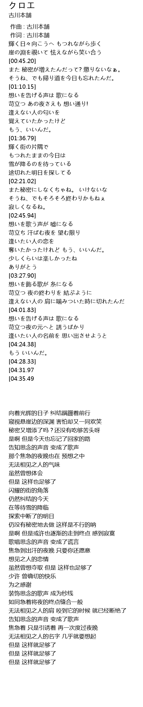 | [04:38.90][04:31.97] | もう いいんだ。 |